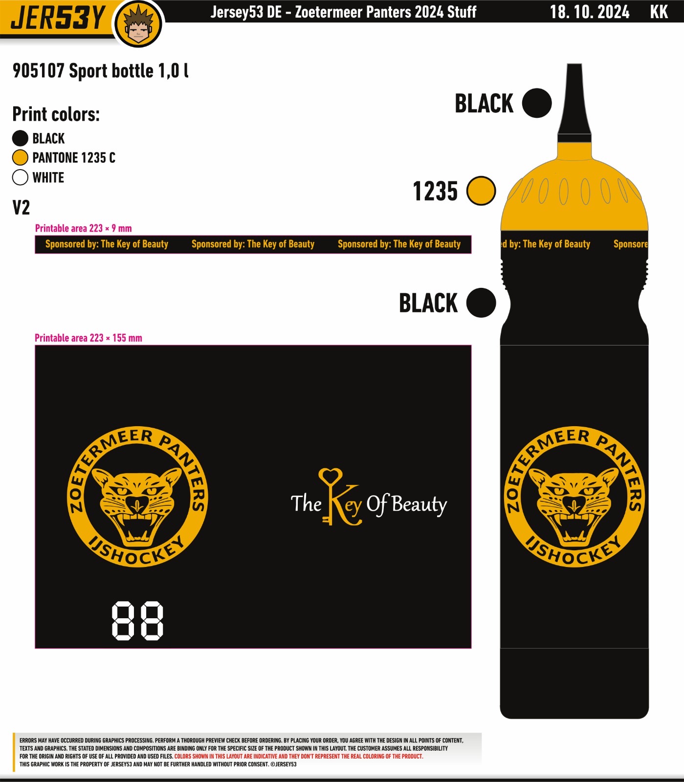 Ja!!! daar is ie dan. De enige echte panter bidon. en oh, wat is ie mooi!!! Echt de sleutel tot een beauty van een wedstrijd